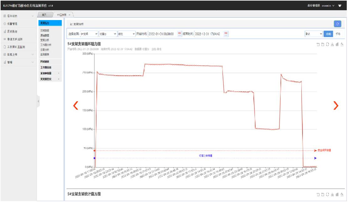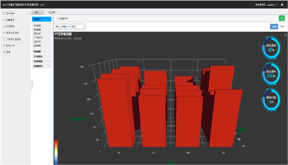 (7)具備工作面支架壓力數據、周期來壓分析和預測預警及工作面支架工況等級評價功能,實現工作面礦壓管理全息化;