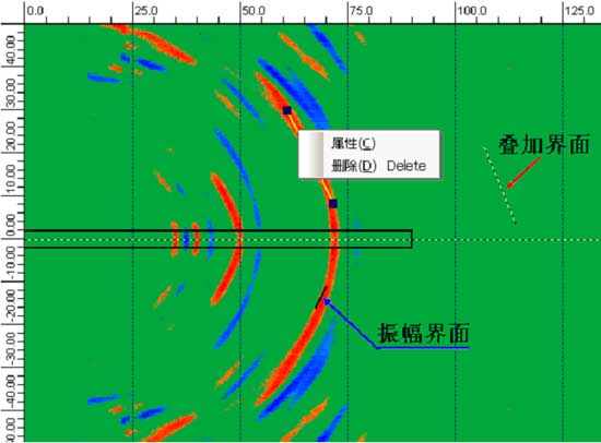 MSP技術基于反射波地震勘探原理,利用礦井巷道空間布置激發點和接收點,激發地震波在傳播過程中遇到波阻抗差異時(如破碎帶,煤巖界面等)將產生反射波。通過處理反射波信號,分析得到相關的地質異常體的反射界面。巷道前方界面反射波與周邊其它界面具有明顯視速度差異,巷道前方界面表現為負視速度,而巷道后方與側面界面表現為正視速速,實現有效識別和提取巷道迎頭前方的目的界面。