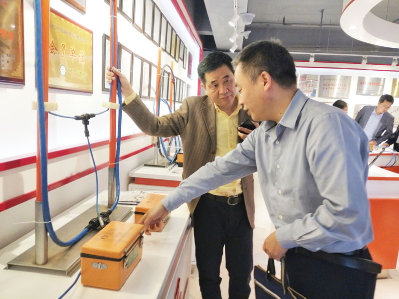 公司領(lǐng)導(dǎo)陪同安徽理工大學(xué)專家、教授參觀公司產(chǎn)品展廳、介紹公司產(chǎn)品與研發(fā)技術(shù)