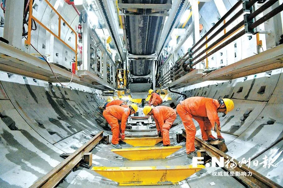 工人在地鐵6號線濱海新城站盾構機內施工作業。記者葉義斌 攝